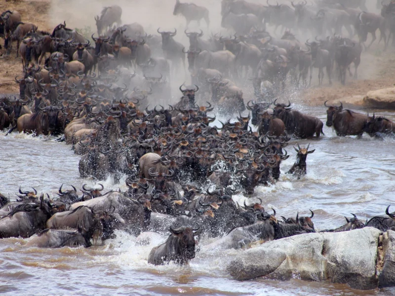 Having flown in from Nairobi, Arusha or Kilimanjaro, the staff will meet you at Kogatende Airstrip (in the north western Serengeti). After your short drive from the airstrip to the camp, a leisurely lunch is followed by time acclimatizing, gazing around yourself and realising you’ve just arrived in the heart of the African Bush! As you settle in, you might swim in the pool, enjoy a massage on your private deck or simply stare blissfully into the distance. Then a late afternoon drive gives you the chance to explore the local wildlife and enjoy a drink against the setting sun, before heading for the wonders of a Serengeti Bushtops dinner.