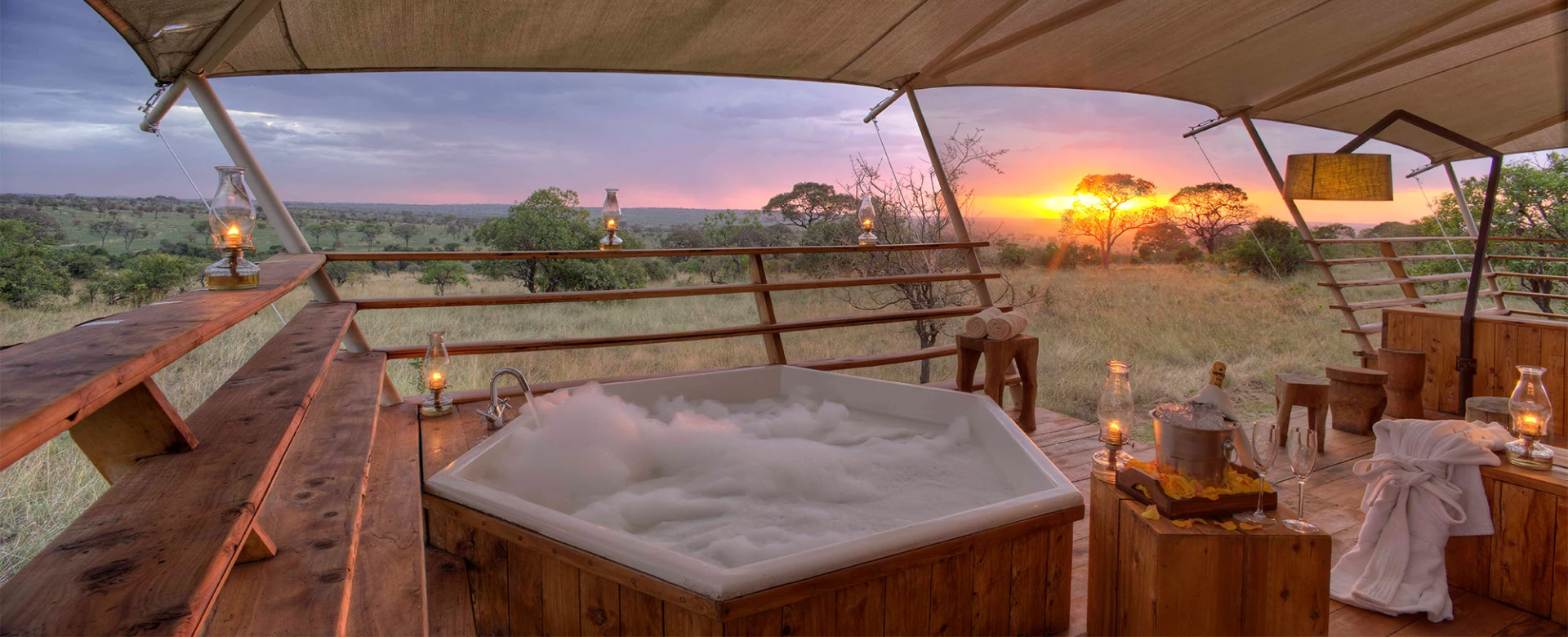 After breakfast on your second day you set out for a full day’s game drive, including a sumptuous buffet lunch within the Serengeti National Park. This day-long adventure is likely to be the highlight of your stay, as the wonders of the Serengeti reveal themselves. With your own private hot tub and glass of something special that awaits your return to camp. It’s the ideal way to wind down before dinner.