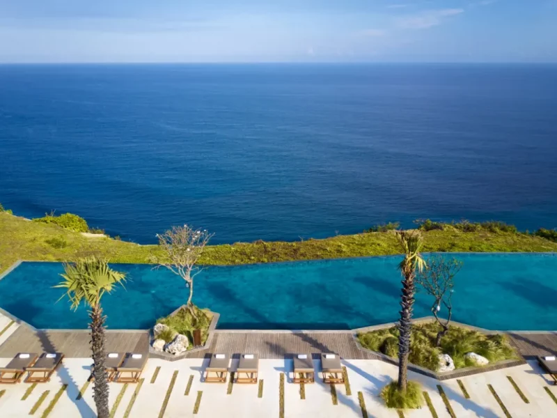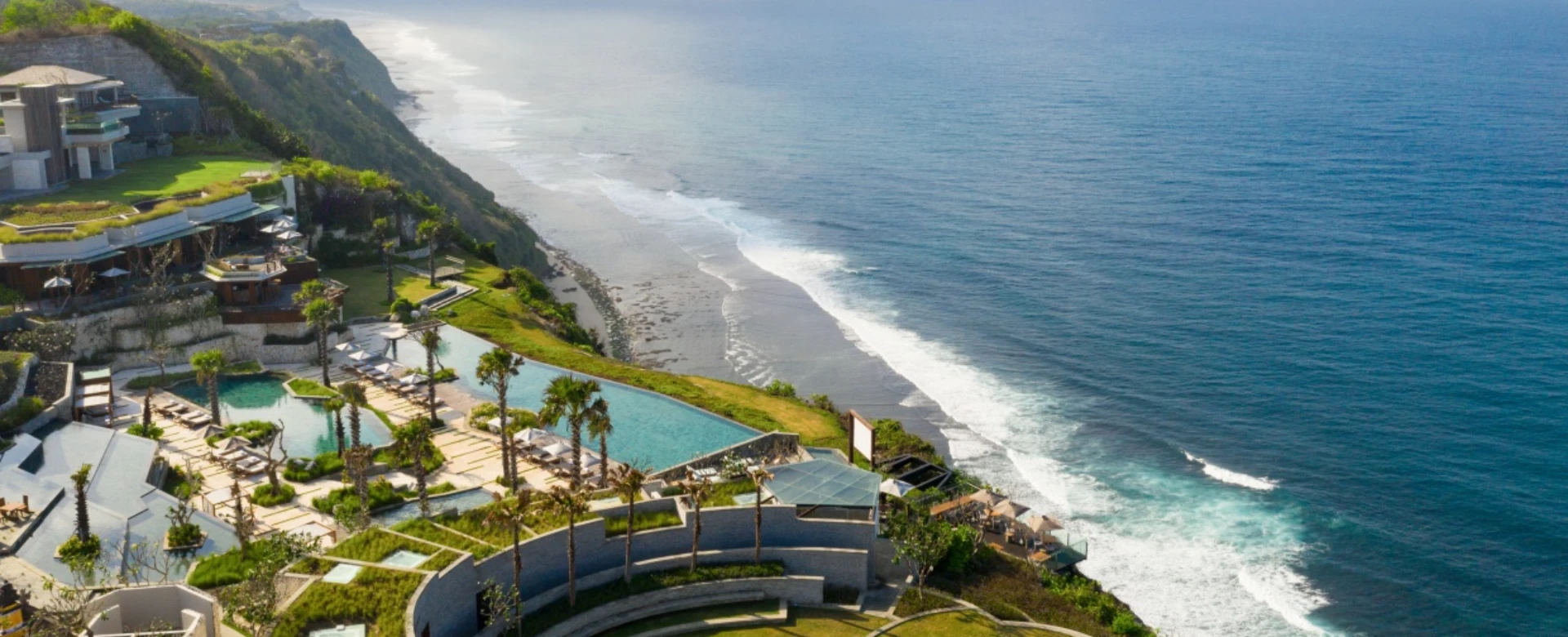 Located on top of the cliffs at the southernmost tip of Bali where the site of Pura Uluwatu is located, the sacred temple considered one of the island’s core spiritual pillars. Here at Uluwatu resort, tradition mixes with beautiful beaches, great surf breaks and an eclectic wellness and dining scene. The setting of this beautiful Balinese inspired resort is breathtaking, with dramatic views of the Indian Ocean from atop the limestone cliffs and uninterrupted ocean views from all facets of the resort.This is Bali’s only green resort certified by the World Green Council