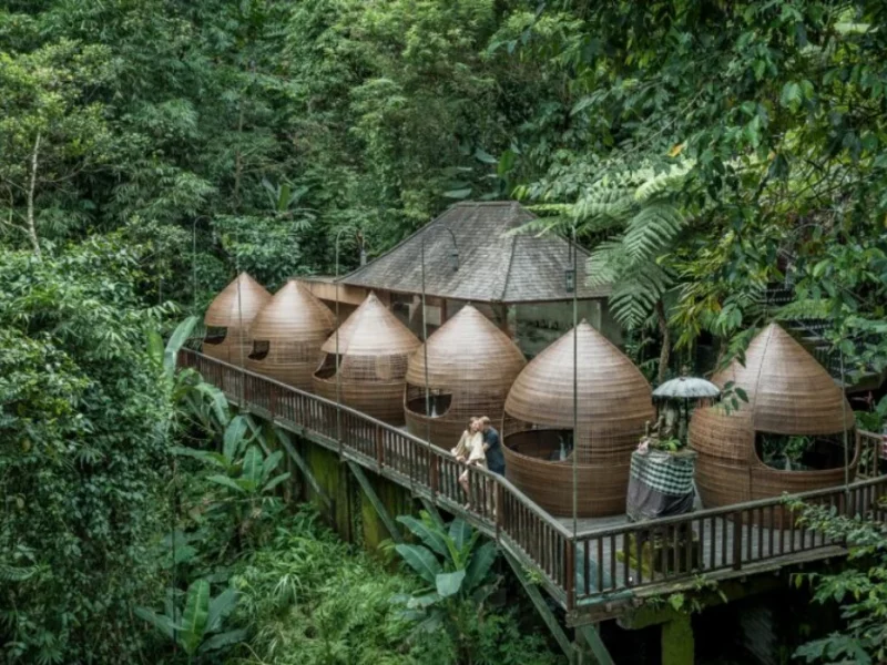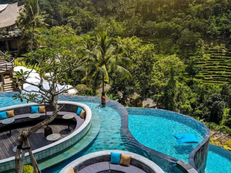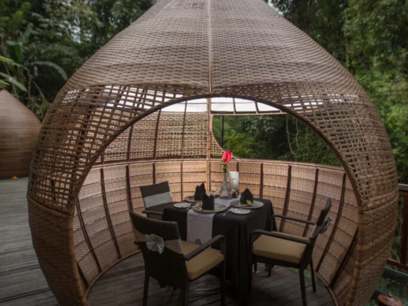 Located in Ubud, it is a hinterland setting edged by topical forest and rice terraces in an area perched above the flowing waters of the Oos River. This serene environment has the unique ability to refresh body, mind and spirit. It is a place where seasoned travellers can escape the hectic pace of everyday life and feel renewed by the beauty of nature. Perfect for couples or honeymooners because it is adults only resort. Kayon offers 20 units featured with large bedroom, living space, ensuite bathroom with bathtub and balcony overlooking the jungle and valley view. For an exceptional dining experience, Kepitu Restaurant at The Kayon Jungle Resort is a smart venue designed to uplift the senses.